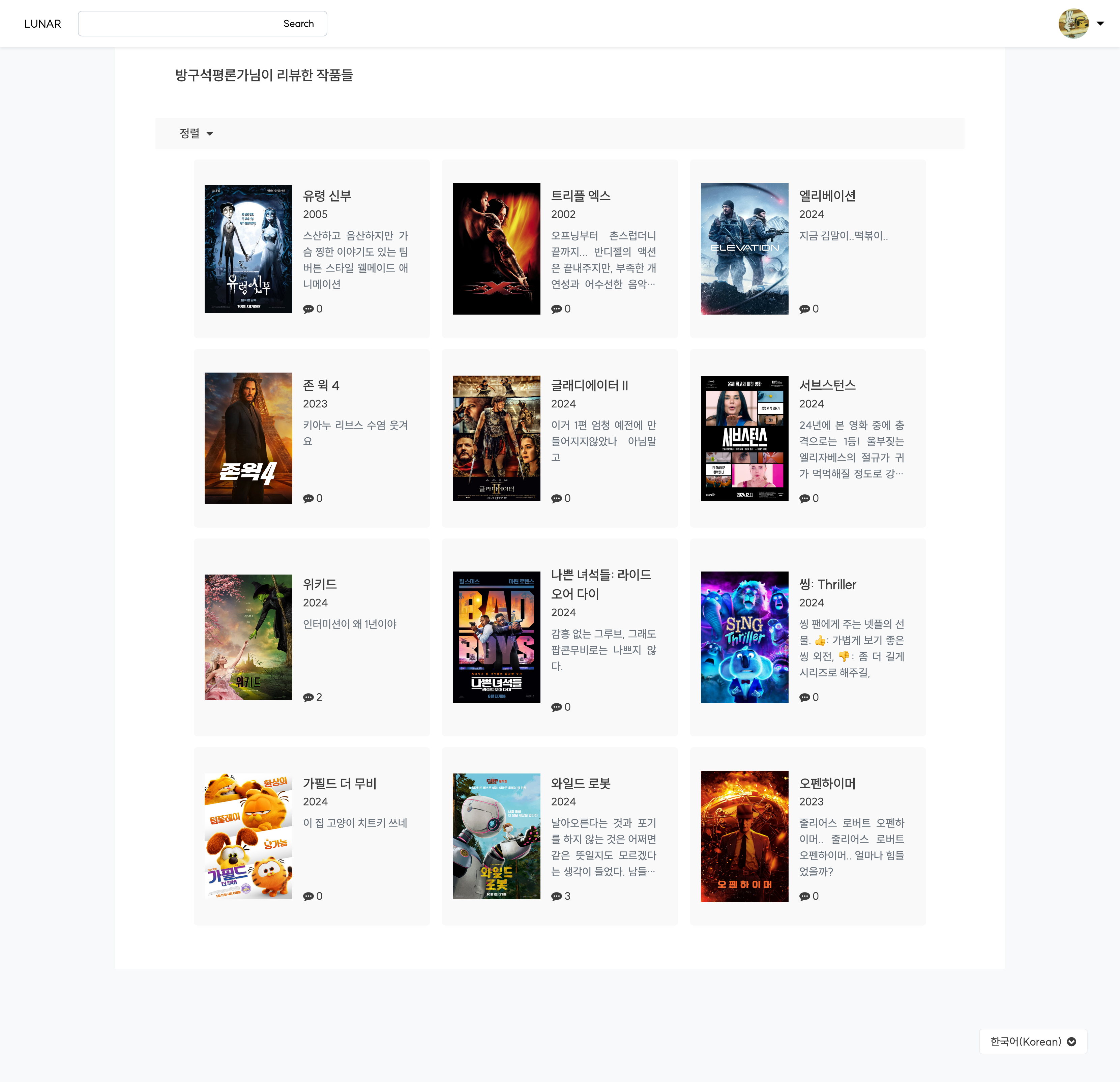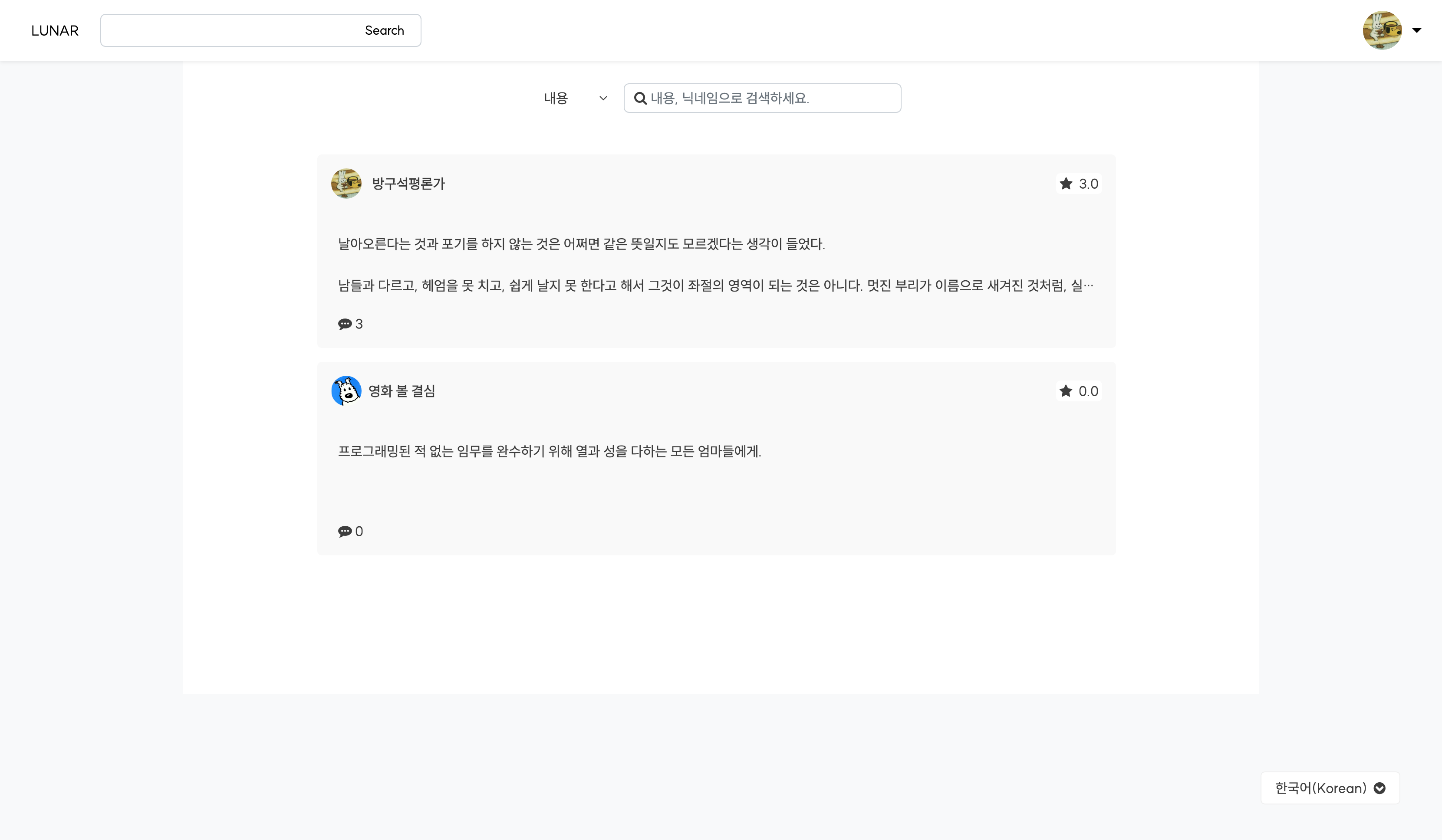 5. 전체 리뷰 검색 페이지 (MovieHub / Lunar)